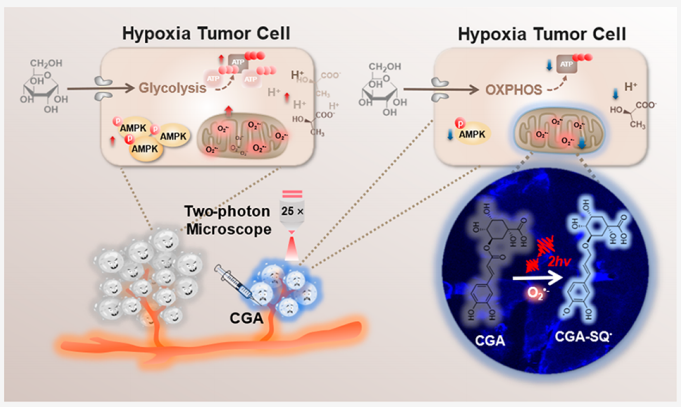 這篇論文研究了綠原酸(Chlorogenic Acid)作為一種雙光子熒光探針,在缺氧條件下調節腫瘤細胞糖酵解的特性。