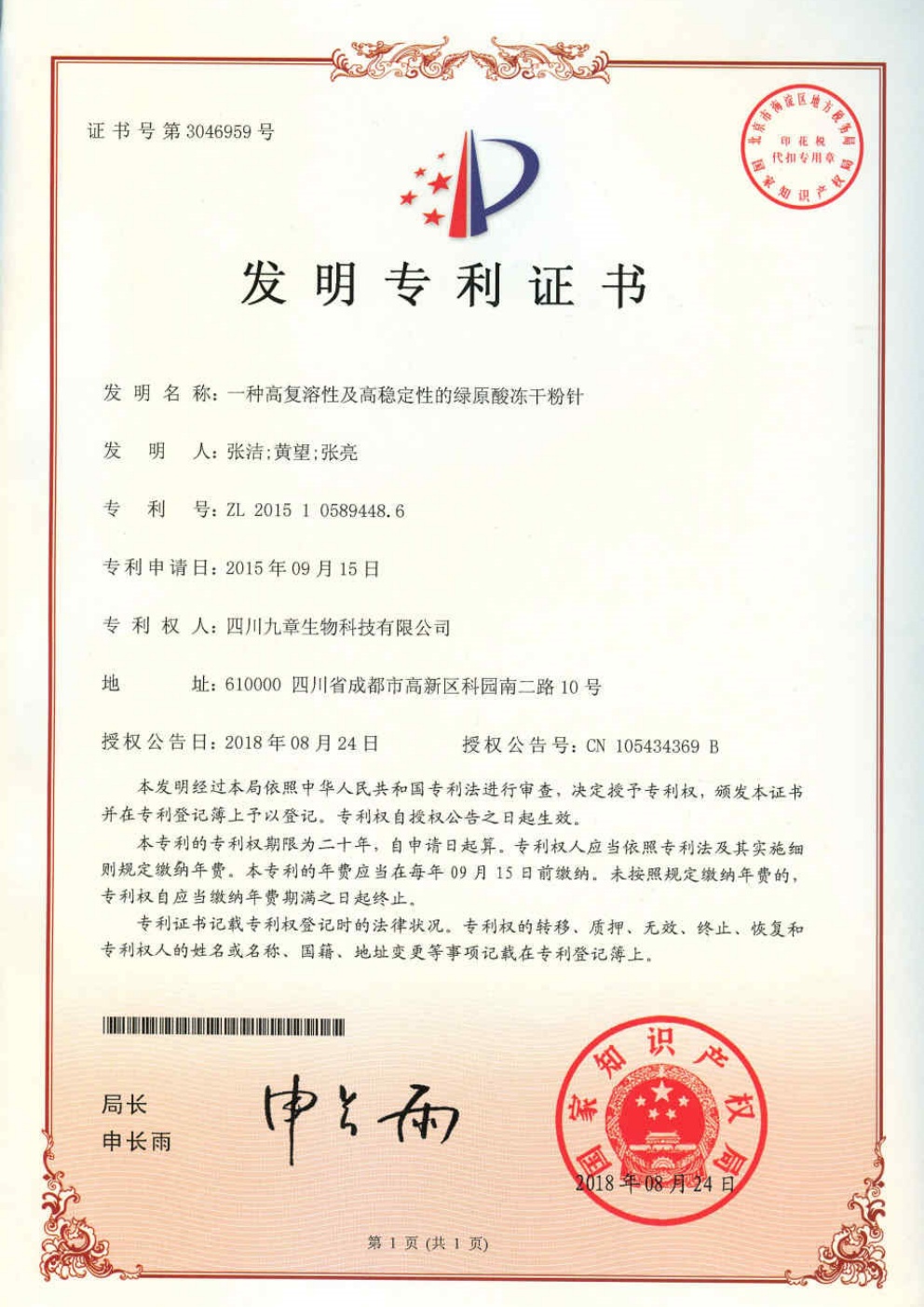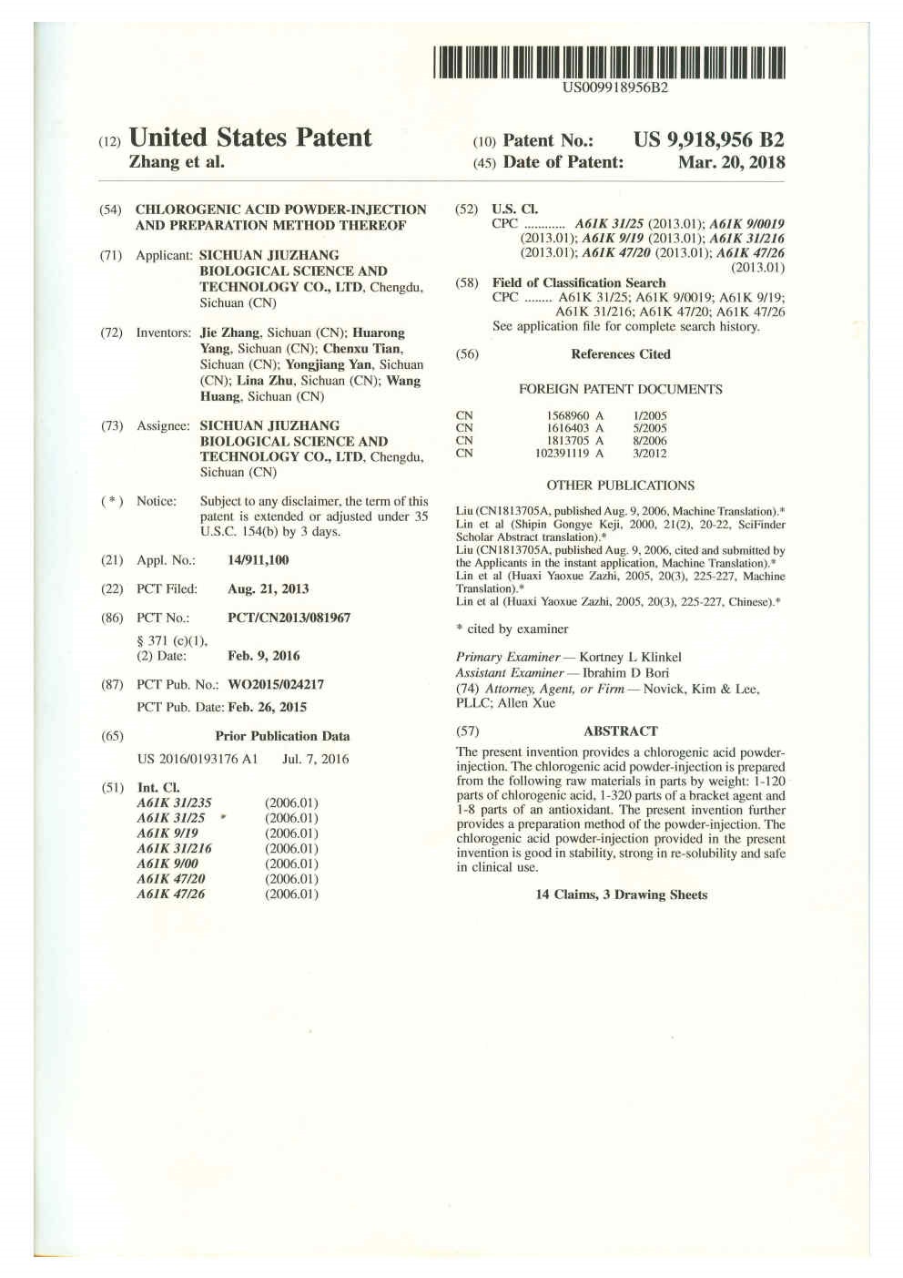 美國-PCT-CN2013-081967 一種綠原酸粉針劑及其制備方法