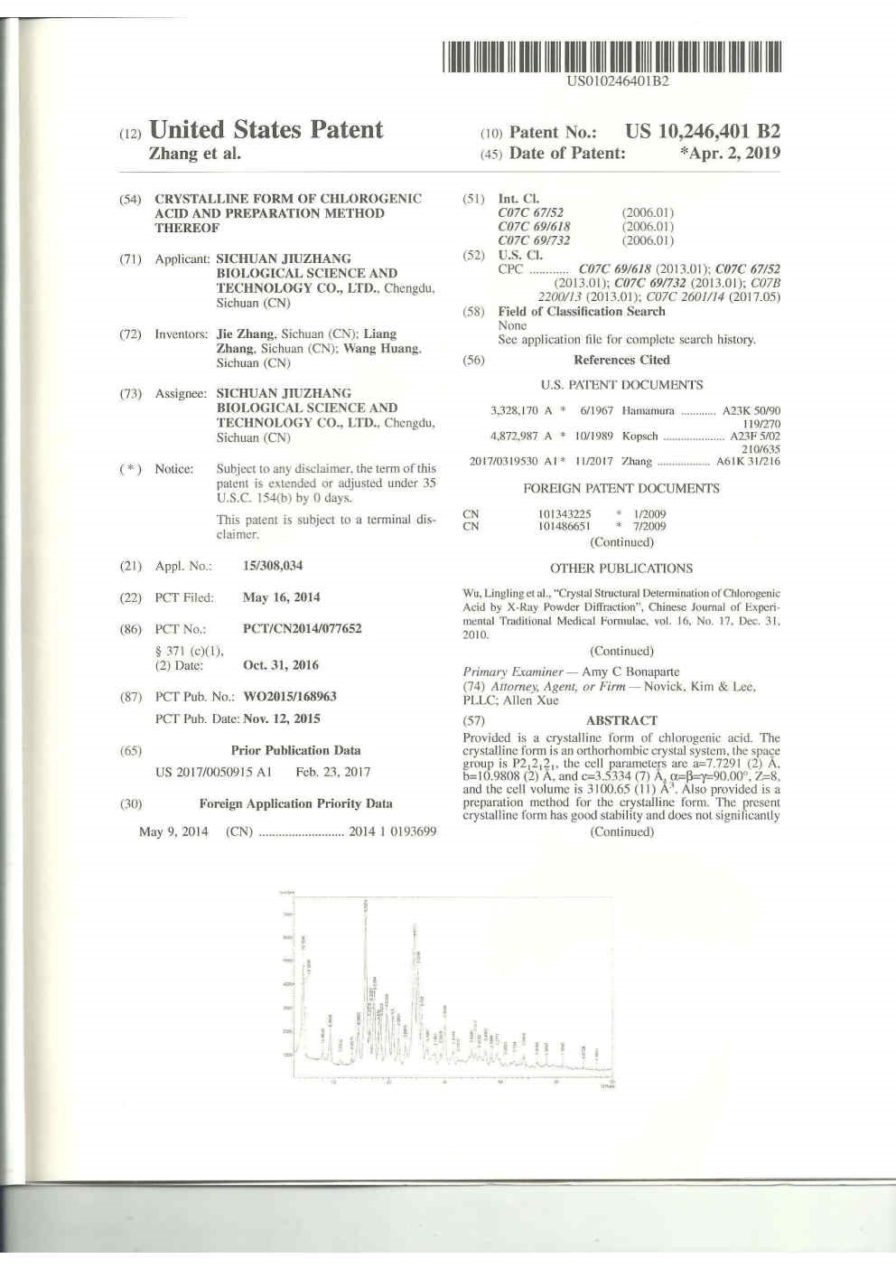 美國-PCT-CN2014-077652 一種綠原酸晶型及其制備方法