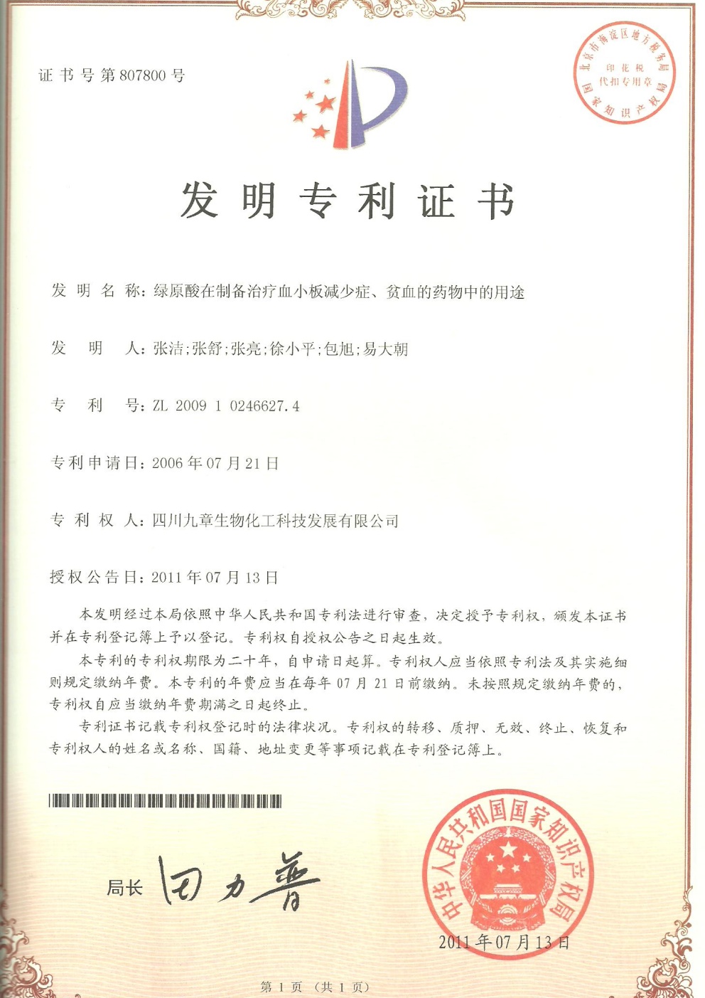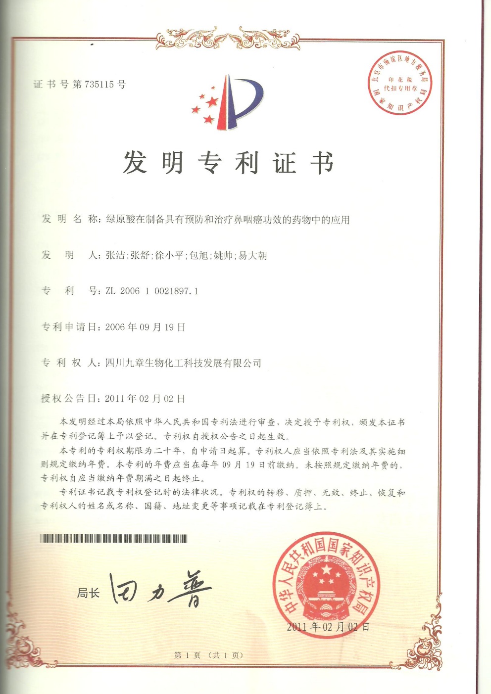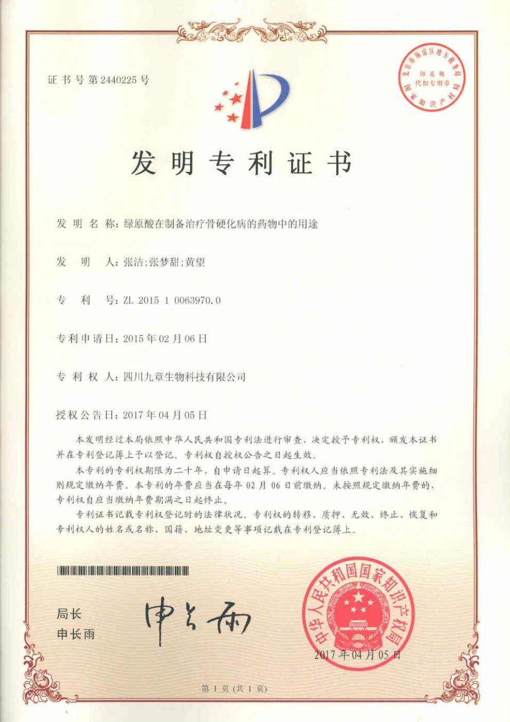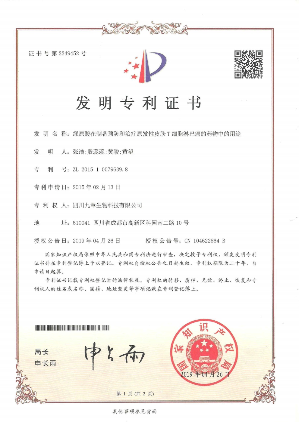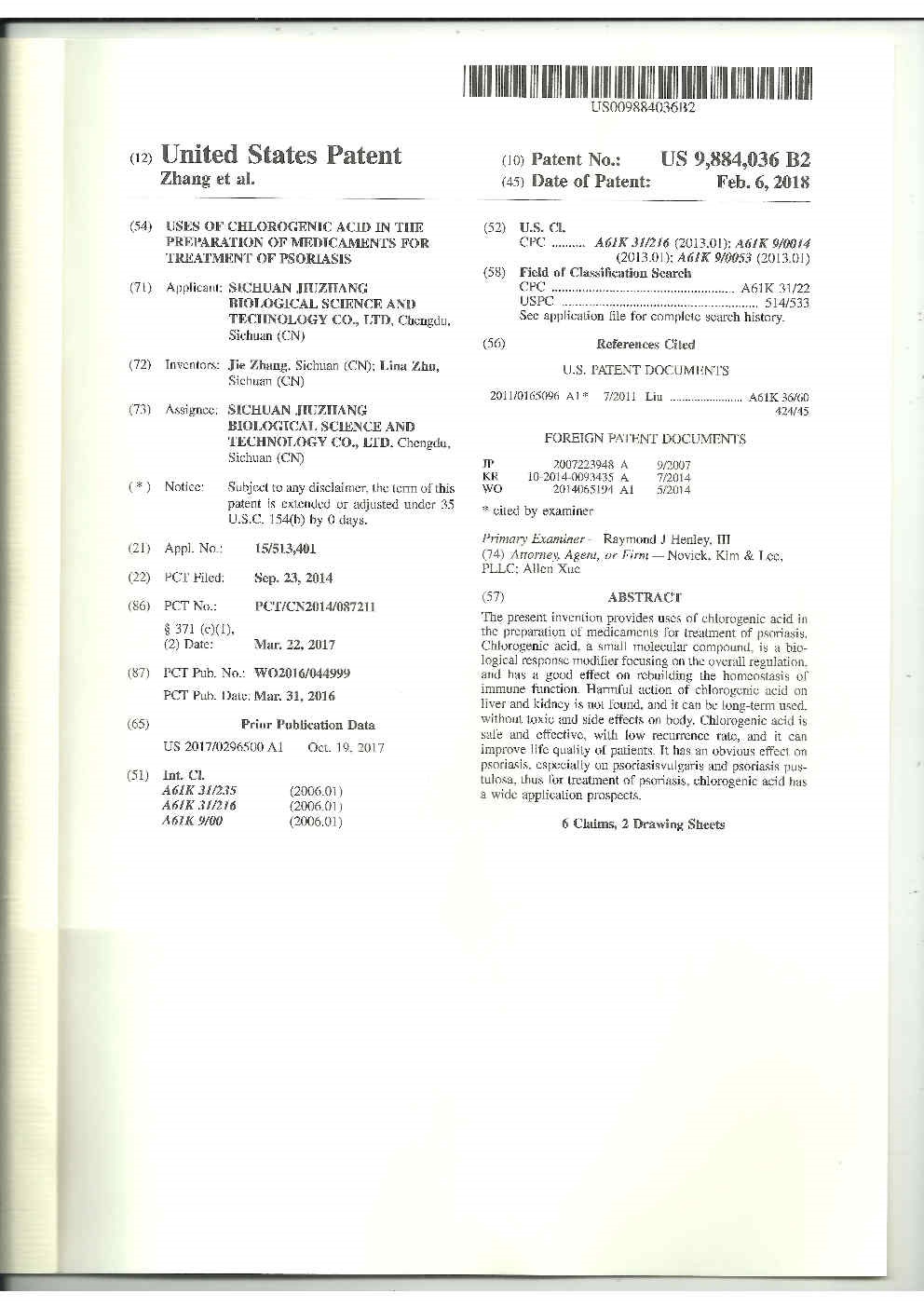 美國-PCT-CN2014-087211 綠原酸在制備治療銀屑病的藥物中的用途