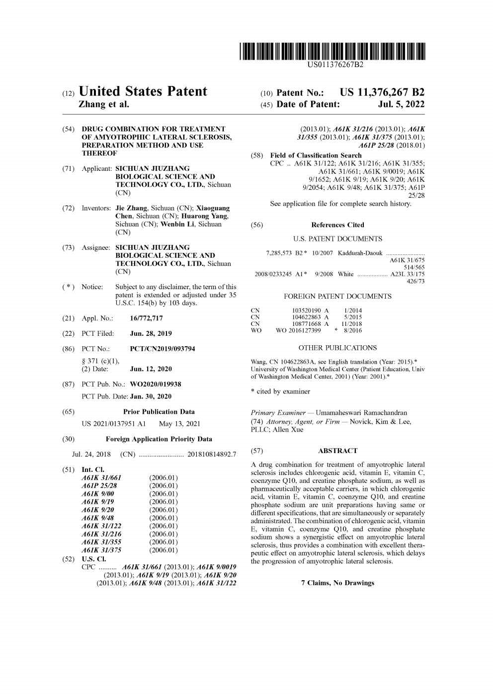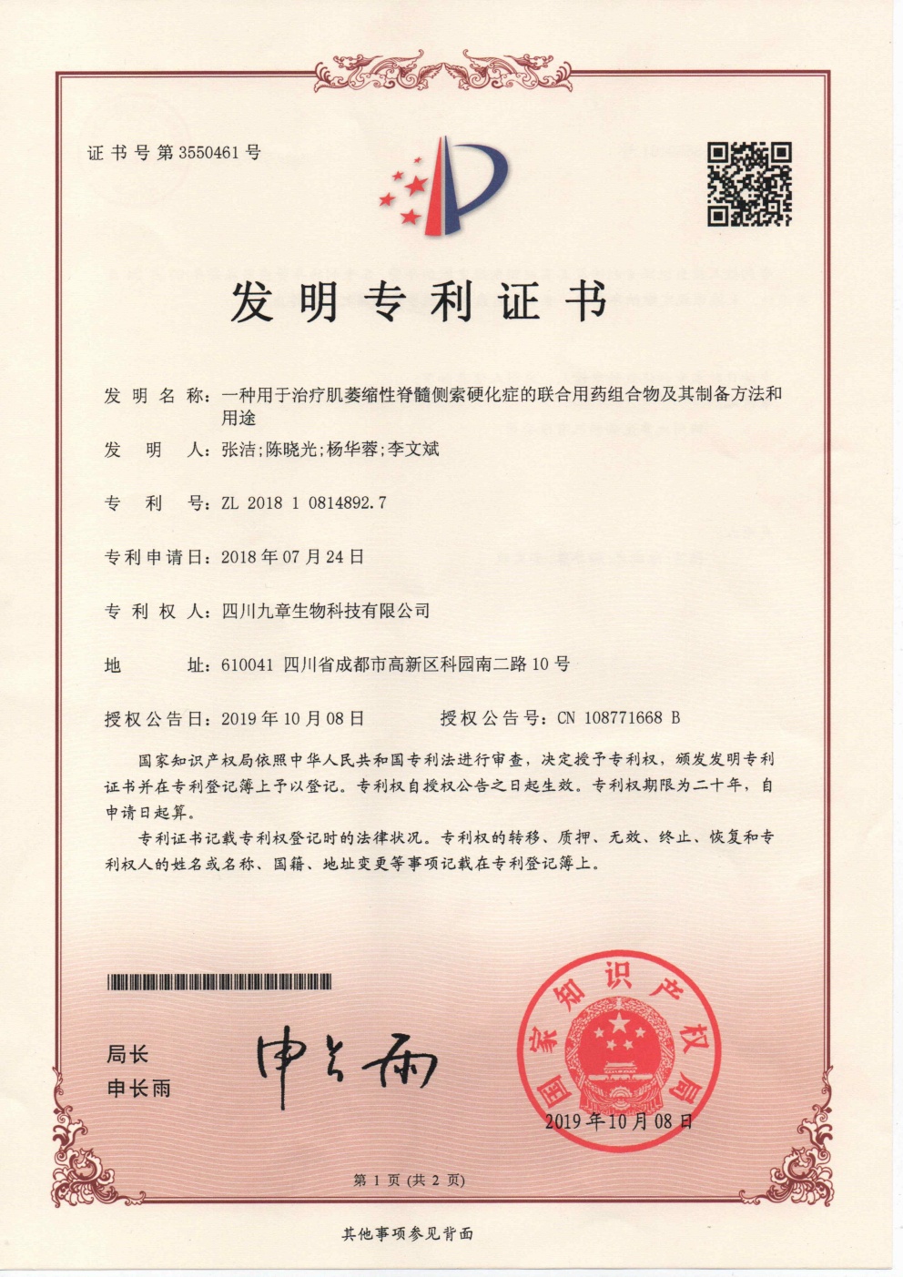 美國-PCT-CN2019-093794 一種用于治療肌萎縮性脊髓側索硬化癥的聯合用藥組合物及其制備方法和用途