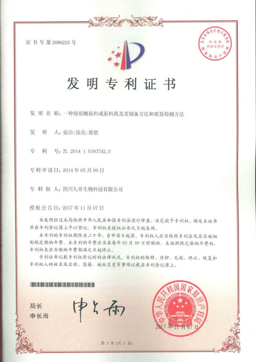日本-PCT-CN2014-077653 一種綠原酸原料或原料藥及其制備方法和質量檢測方法