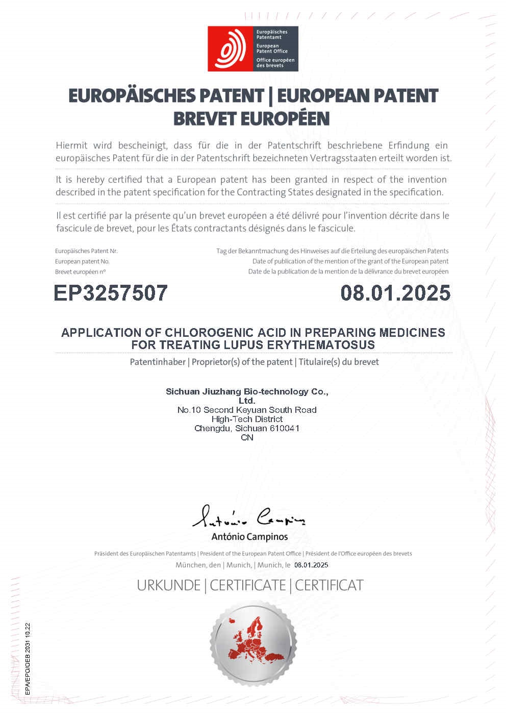 歐洲-PCT-CN2016-072124 綠原酸在制備治療紅斑狼瘡的藥物中的用途