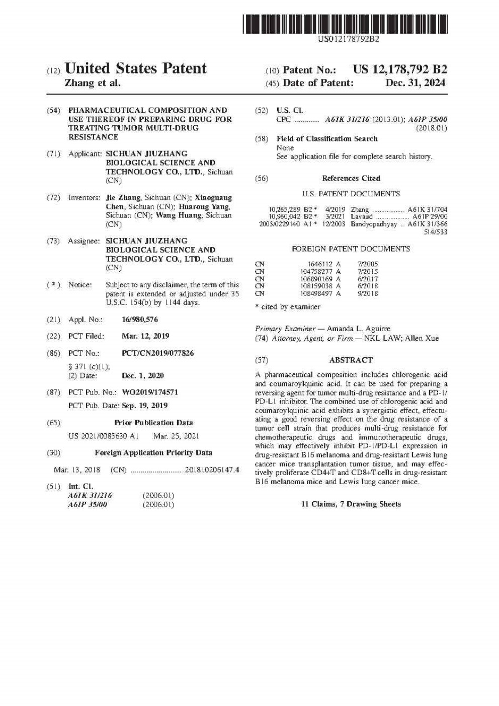 美國-PCT-CN2019-077826 一種藥物組合物及其在制備治療腫瘤多藥耐藥性的藥物中的用途