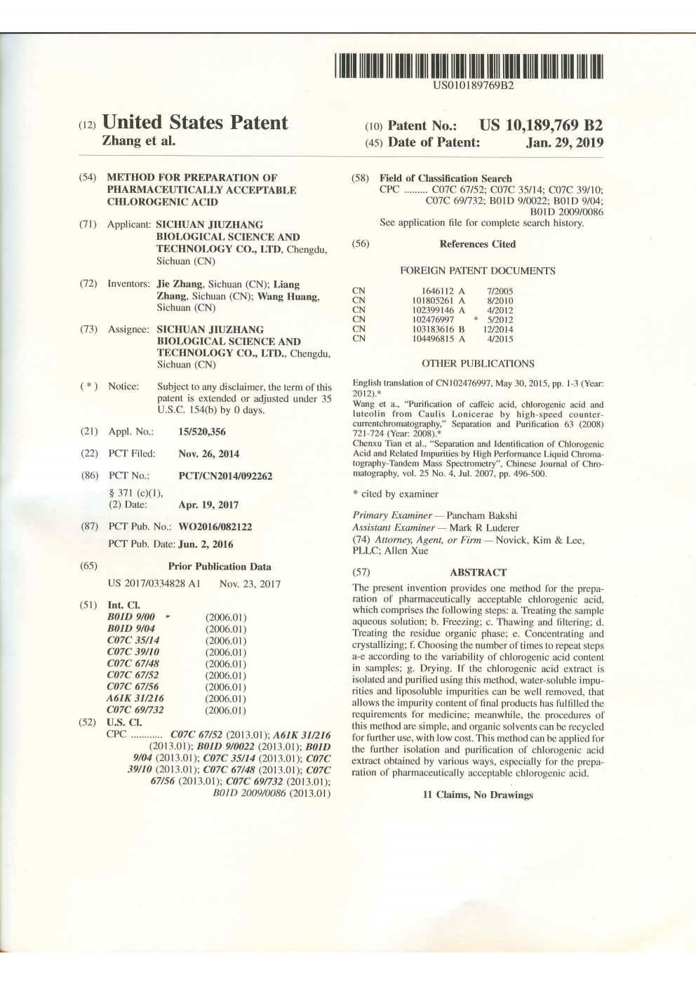 美國-PCT-CN2014-092262 一種藥用綠原酸的制備方法