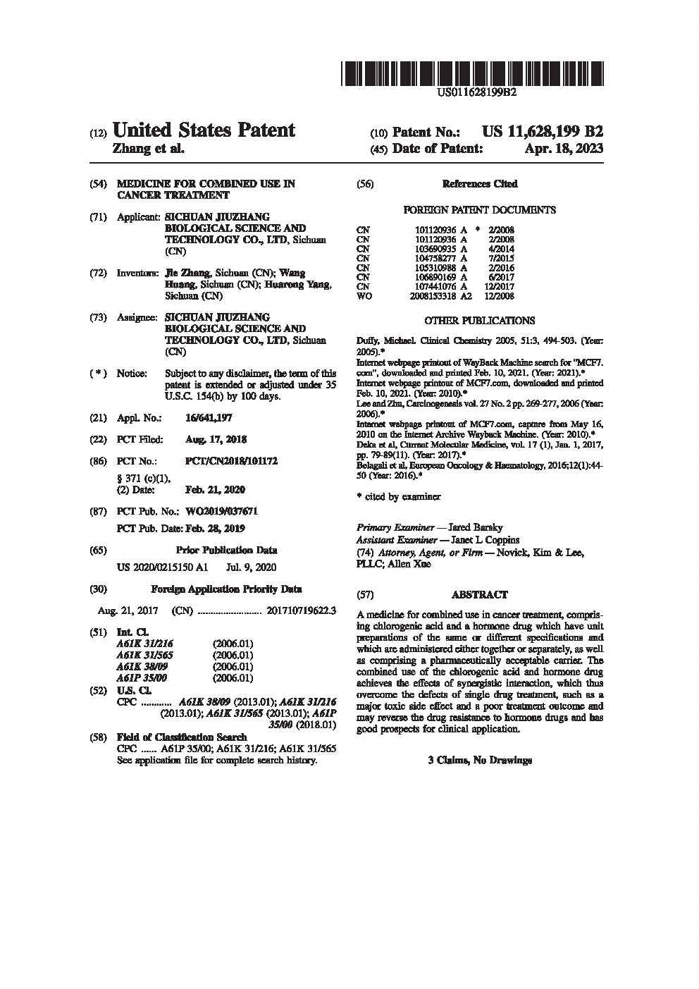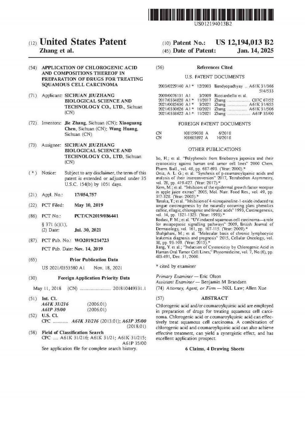 美國-PCT-CN2019086441 綠原酸及其組合物在制備治療鱗狀細胞癌的藥物中的用途
