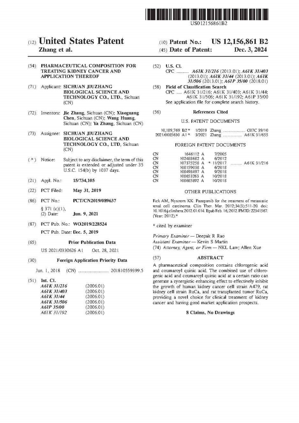 美國-PCT-CN2019-089637 用于治療腎癌的藥物組合物及其應用