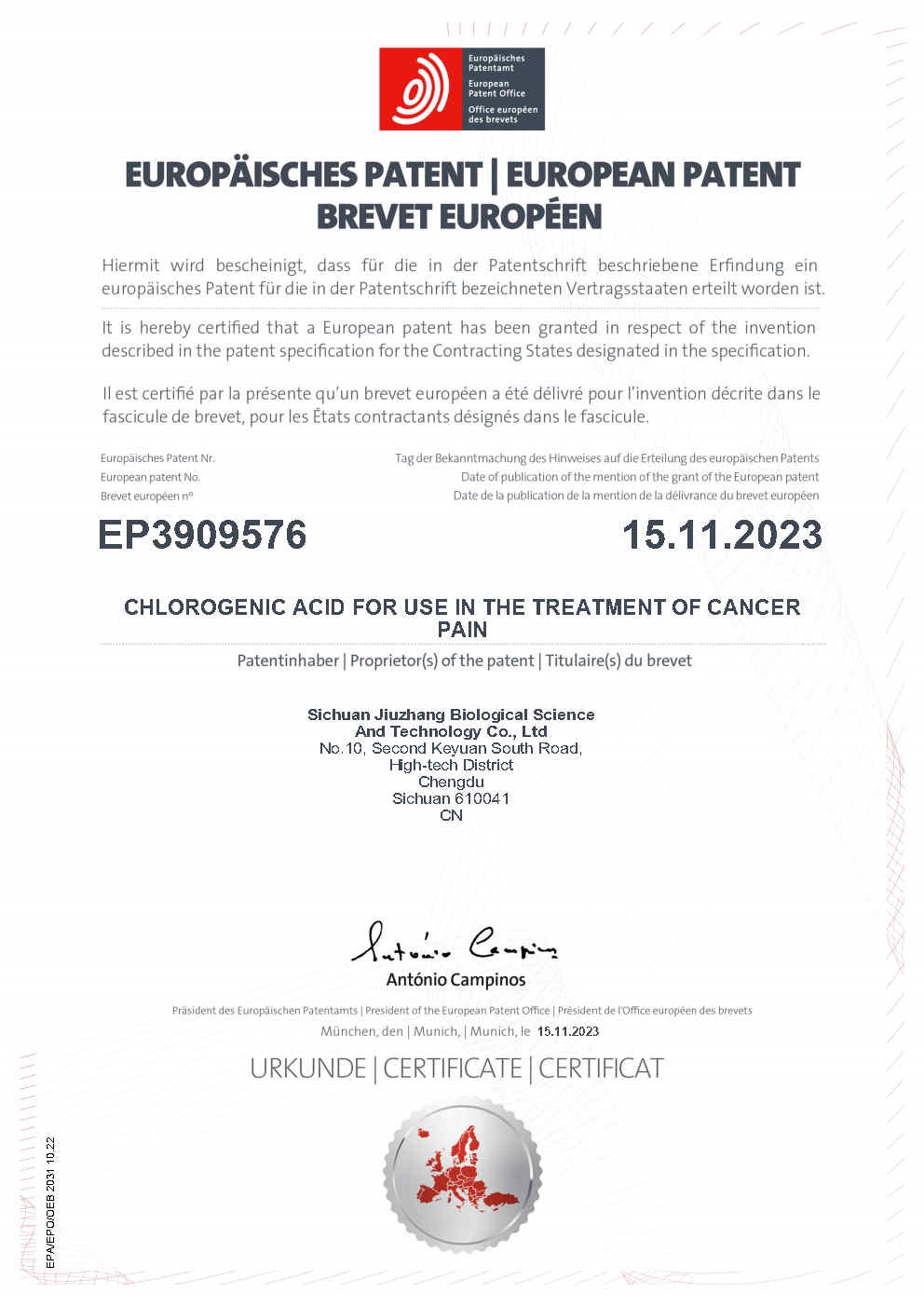 歐洲-PCT-CN2020-071345 綠原酸在制備預防或治療疼痛的藥物或藥物組合物中的用途